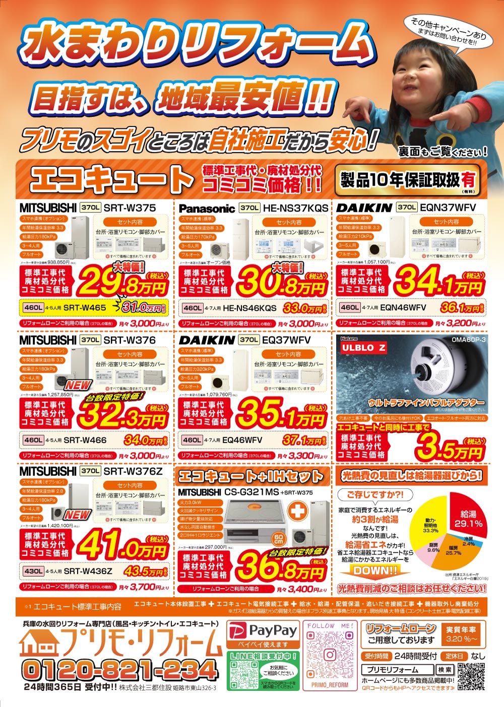 兵庫・三木市のエコキュート・オール電化工事 - プリモ・リフォーム。