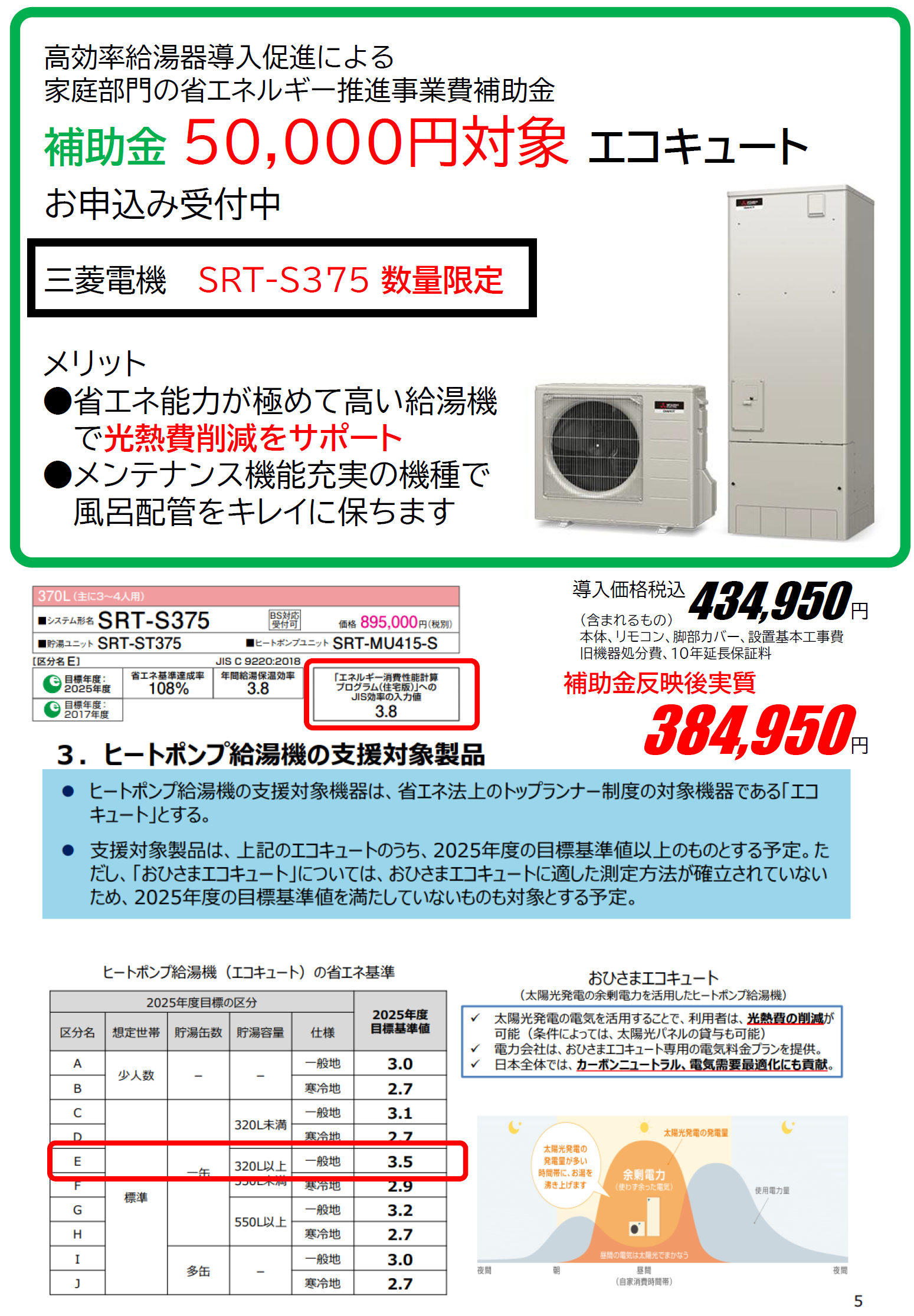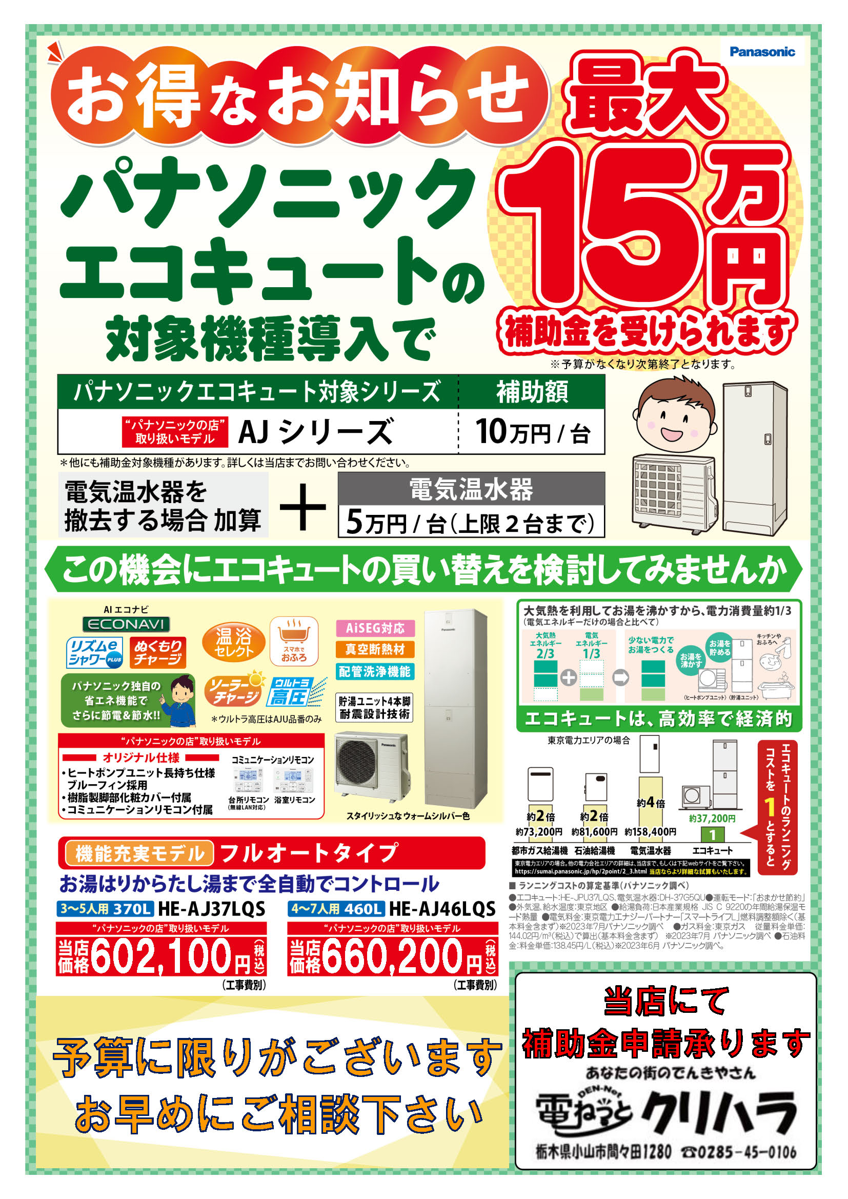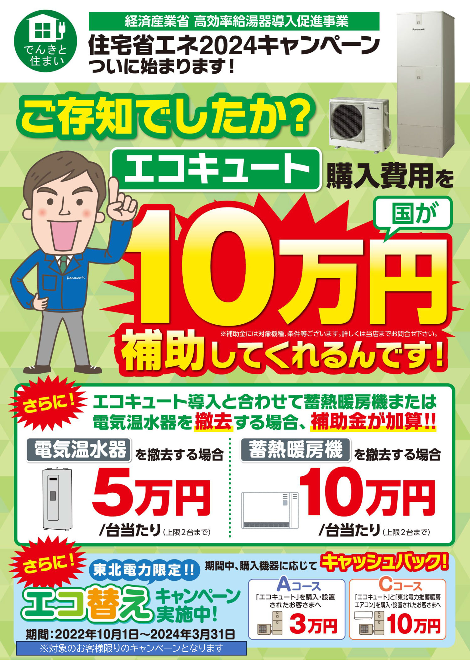エコキュートご購入の際、補助金をご利用いただけます! – 下関市小月駅前の町の電気屋『パナどっととうぶ』。