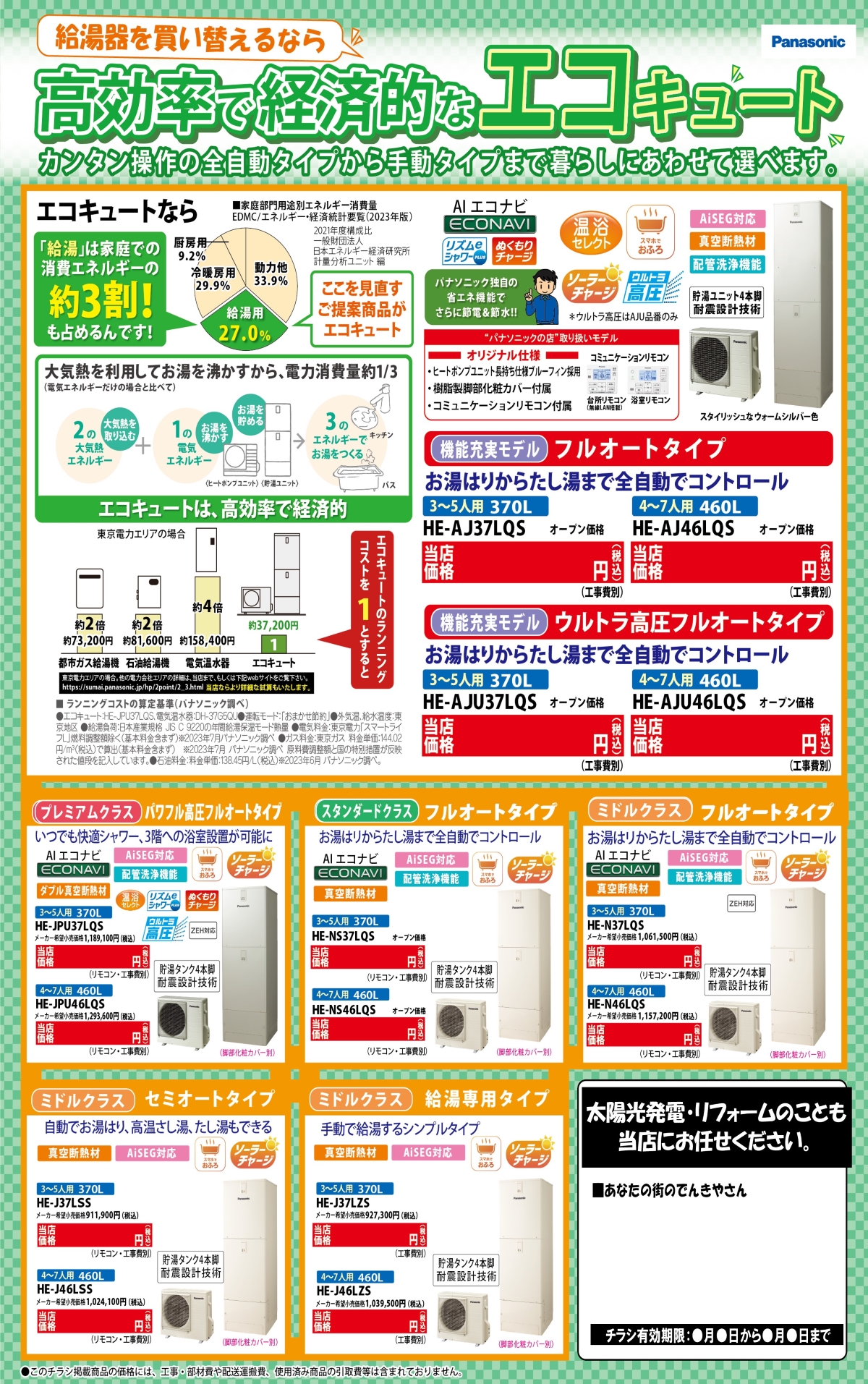 明日の折込チラシを先行公開✌️福井エコキュートエコキュート交換給湯器補助金福井リフォーム福井のいいところはぴコイン。