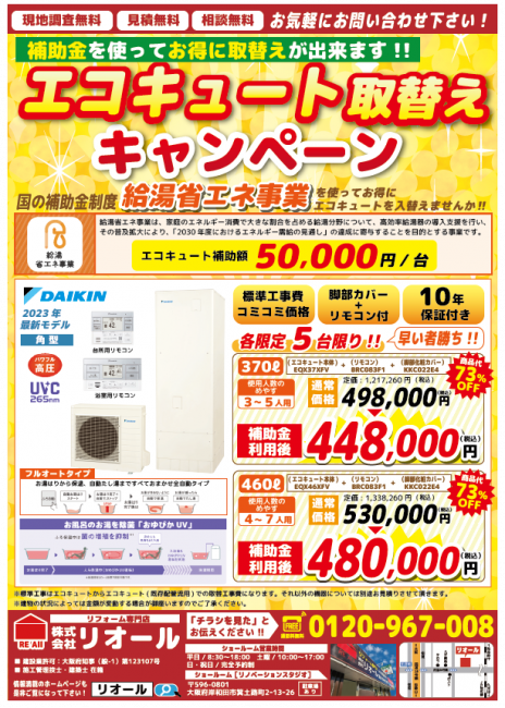 エコキュート取替えキャンペーン新着情報詳細株式会社リオール。