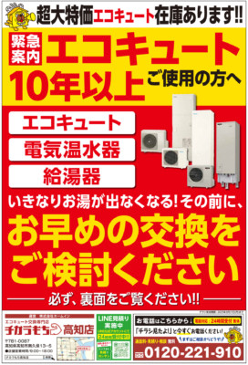 2025年1月のチラシです!高知のエコキュート交換工事専門店「チカラもち高知店」。