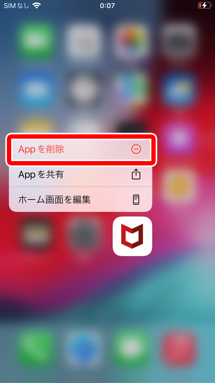 アンインストール手順<iPhone版 マカフィー for ZAQ>ZAQサポート。