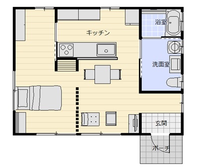 一人暮らしの平屋の間取り図1LDK間取りシミュレーション平屋間取り。