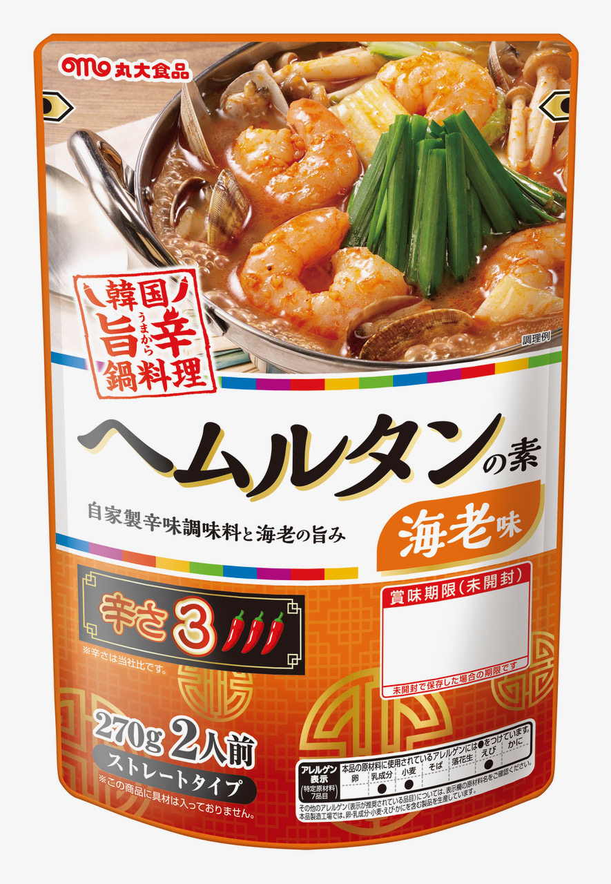 丸大食品韓国旨辛鍋料理の「ヘムルタンの素」が海老と牡蠣2つの味で新登場。