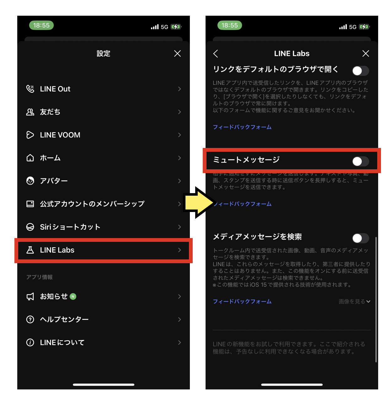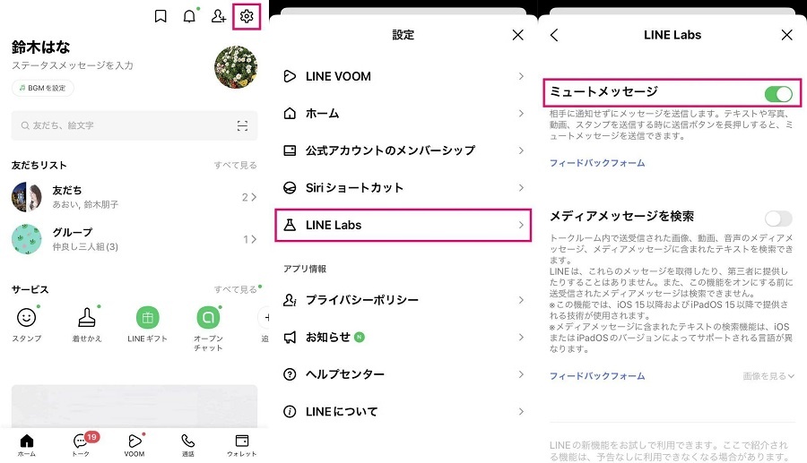 ミュートメッセージ機能を利用する LINEラボ LINEみんなの使い方ガイド。
