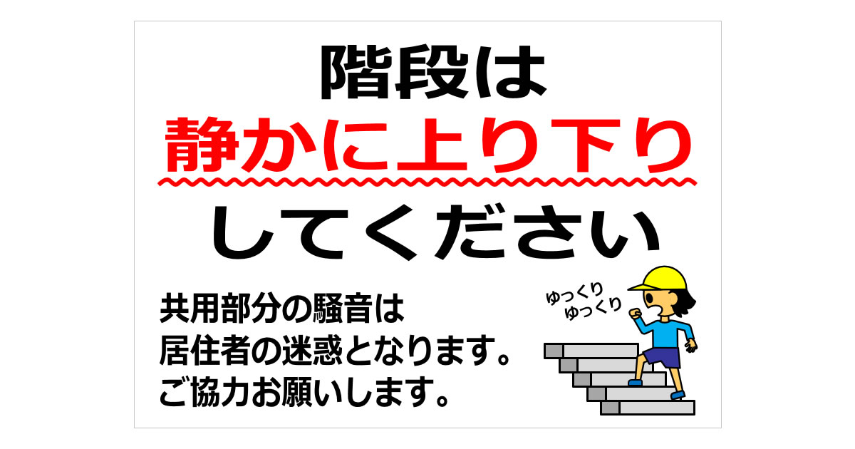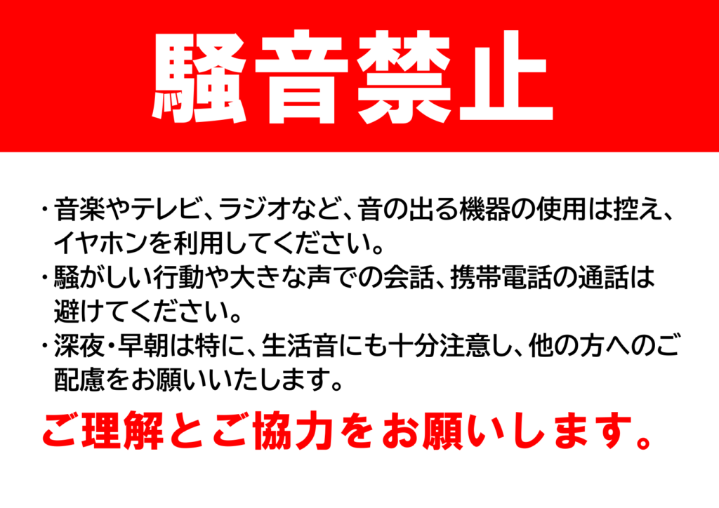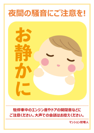 騒音注意の張り紙のイラストデザイン マンション・アパート・店舗 「Excel・Word・P。