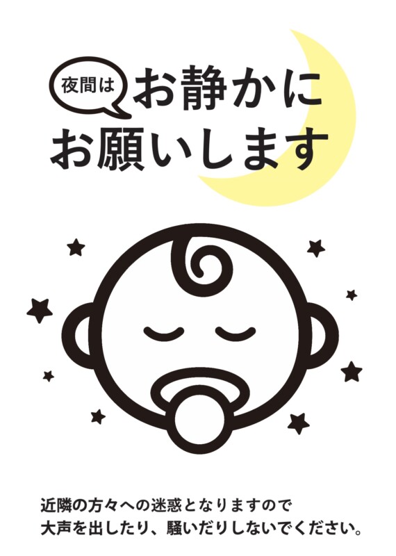 無料ポスターテンプレート – 夜間の騒音注意を伝えるポスターデザインASOBOAD。