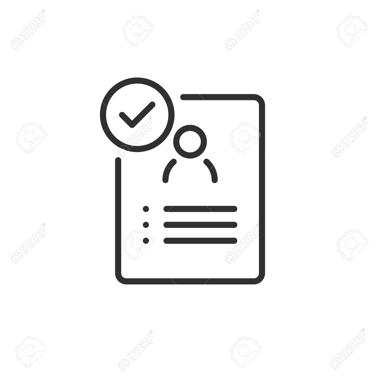 承認された履歴書の概要アイコン。モバイルコンセプトとウェブデザインのための線形スタイルのサイン。求人応募は、単純な線のベクトルアイコンを承認しました。シンボル、ロゴのイラスト。ピクセル完璧なベクトルグラフィックのイラスト素材・ベクターImage 184572439。