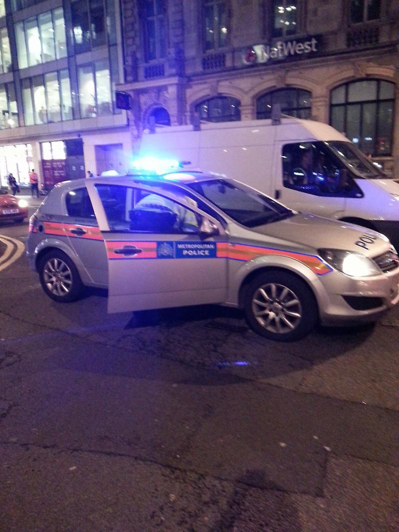 ロンドン イギリス 2018 警視庁パトカー点滅の青いライトでロンドン中心部で夜に路上駐車 —ストック編集用写真©CeriBreeze 242747606。