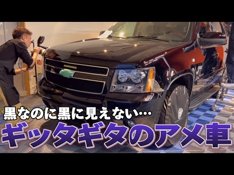 キズが多すぎてグレーに見えるアメ車の黒、研磨で整えます! シボレータホ- YouTube。