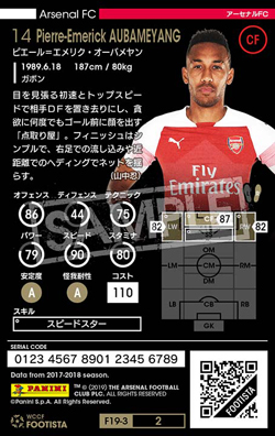 ピエール=エメリク・オーバメヤンFOOTISTAカードデータ詳細。