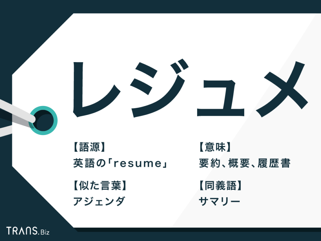 レジュメ」の意味とは?アジェンダとの違いや書き方の例も紹介TRANS.Biz。