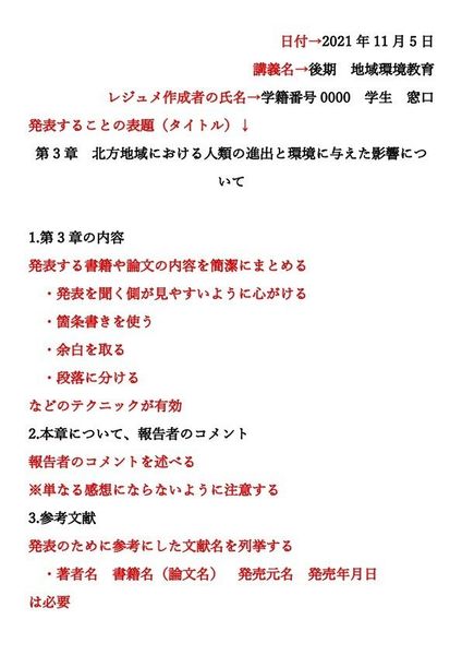 卒業研究レジメの書式東北大学教育学部・教育心理学コース。