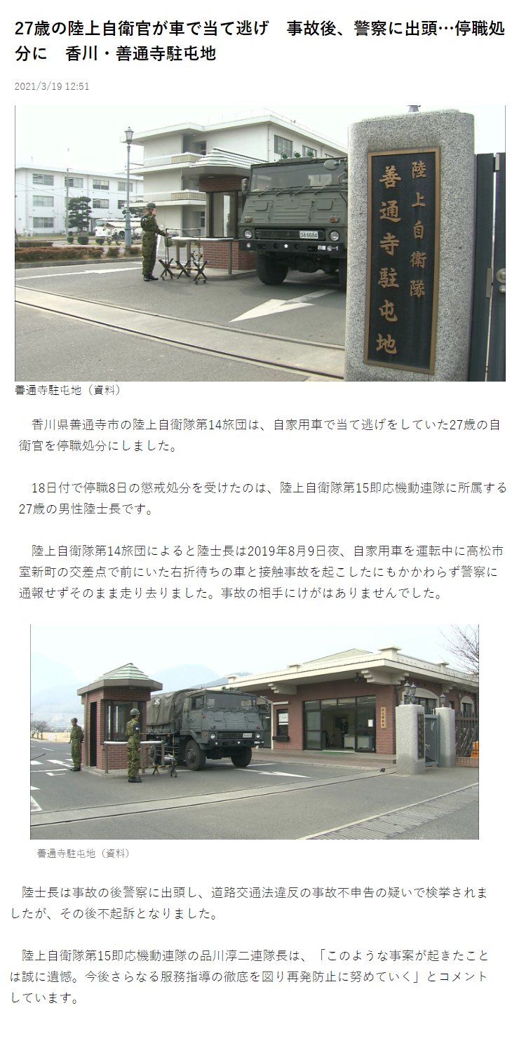 陸自日本原駐屯地 男性陸曹を停職 地内、速度超過で事故 同僚が重傷:山陽新聞デジタルさんデジ。