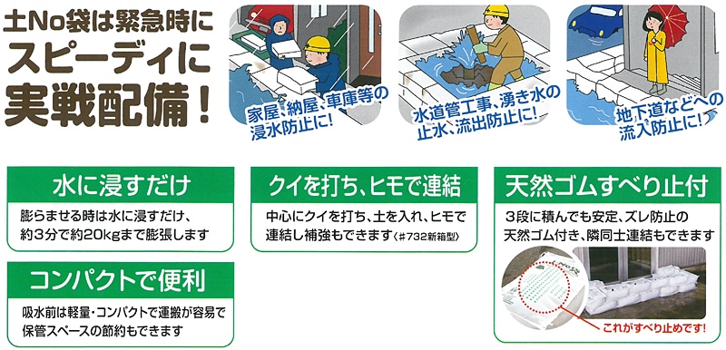 吸水土嚢袋 砂は不要 土のう土嚢袋 緊急簡易土のう 吸水土のう袋 水で膨らむ土のう袋 株式会社錦土嚢 麻袋 再利用可能版 吸水後重量約20kg 防災吸水膨張バ 土嚢 土のう 袋 土のいらない 吸水 土嚢 水で膨らむ「土No袋 #722箱型」☆お得な50枚セット☆洪水対策 大雨。