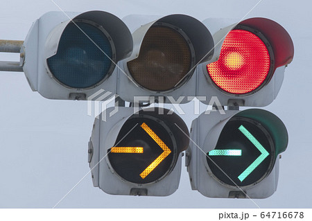 路面電車の信号:赤+黄色矢印点灯の写真素材64716687- PIXTA。