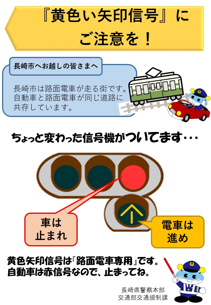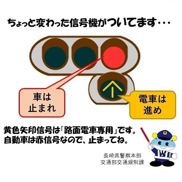 黄色い矢印信号』にご注意を! 路面電車用信号機交通規制長崎県警察 Nagasaki Prefectural Police。