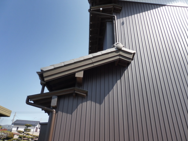 外壁施工例有限会社ブリキンながいガルバリウム外壁の張替え屋根の張替え雨どい石川県金沢市。