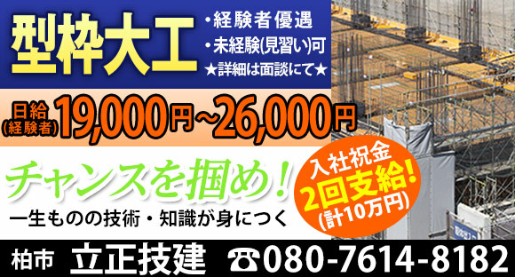 型枠大工募集!◎高収入&安定♪経験者歓迎♪寮完備♪社保完備♪最寄り駅から徒歩3分!株式会社 匠工務店千葉県流山市の求人情報 - エンゲージ。
