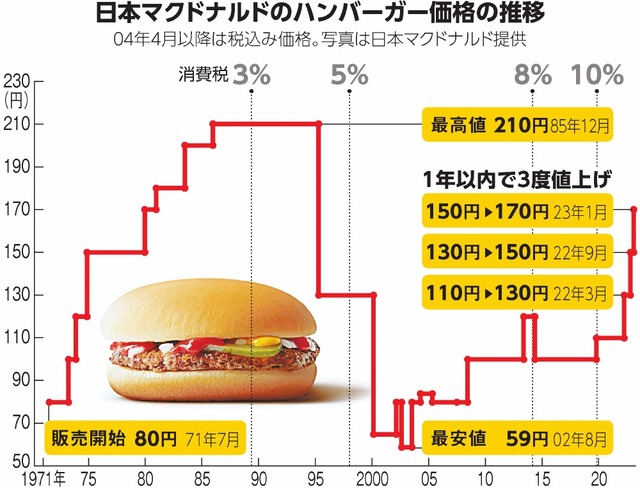 マクドナルド値上げ あなたの思い出のハンバーガーの値段は? 52年の価格変遷を振り返る名古屋・愛知・岐阜・三重のニュース CBC newsCBC web1ページ。