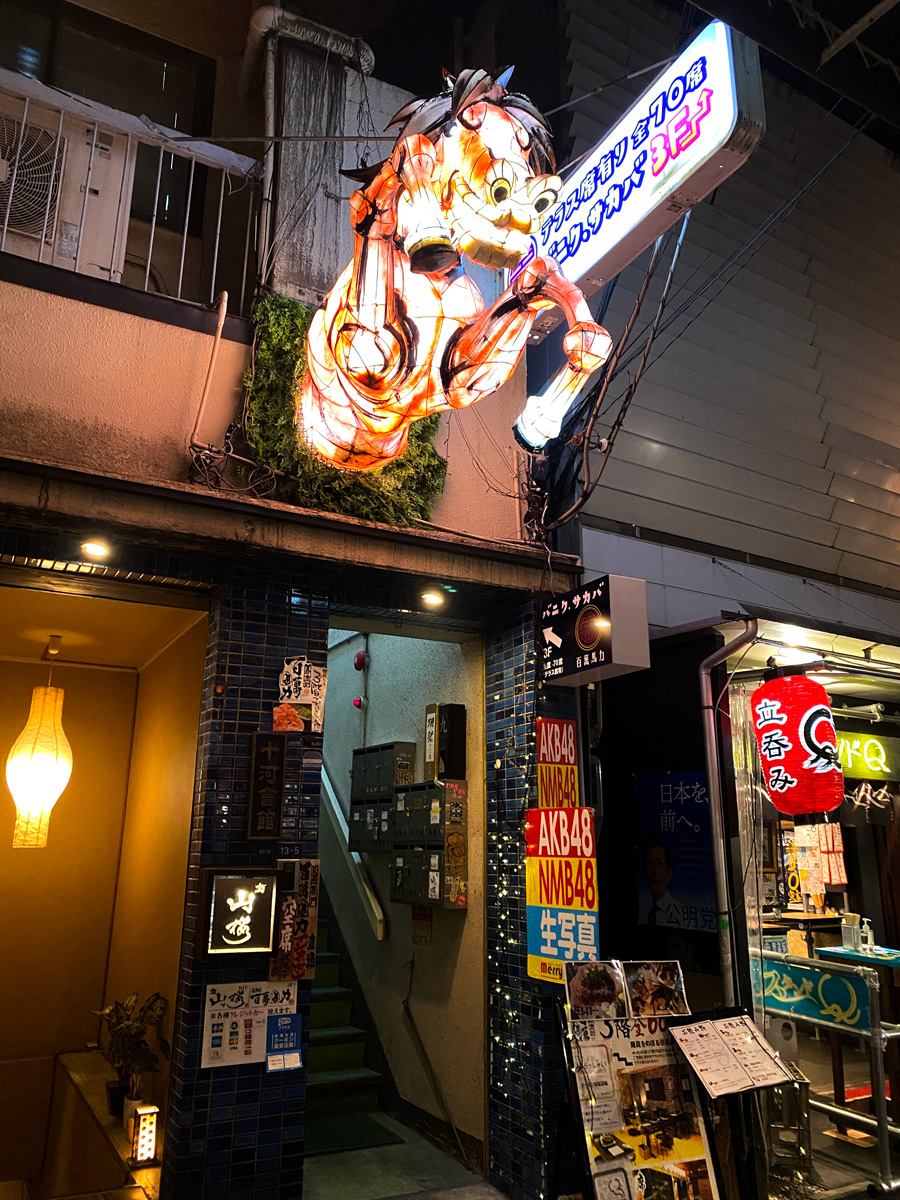 繁華街の飲食店看板の最強タッグ 矢印電飾看板+メニュースタンド看板のサインシティ。