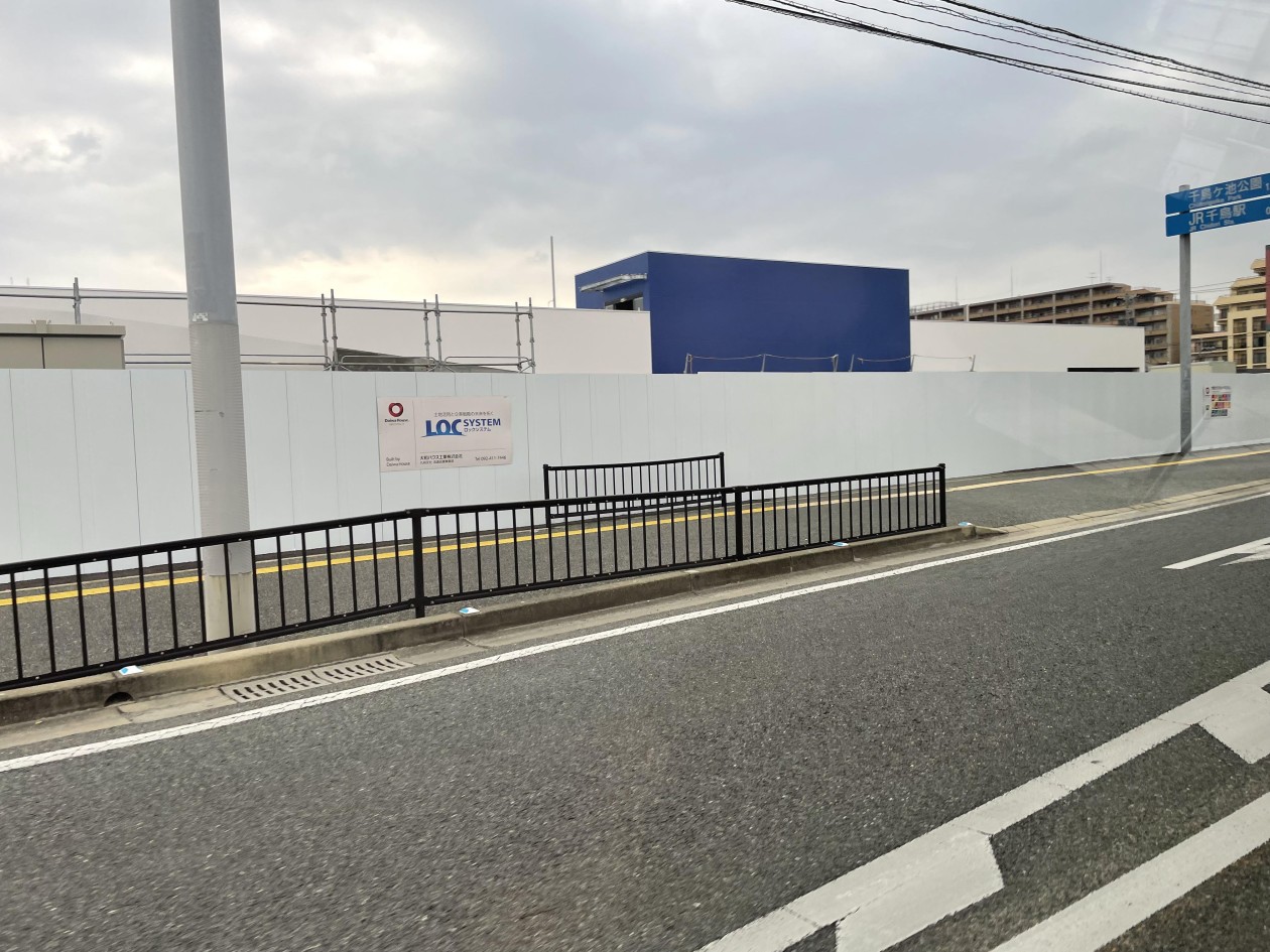 山手幹線ぞい西宮北口にできるスーパー「OKストア」の横断幕でてる西宮つーしん。