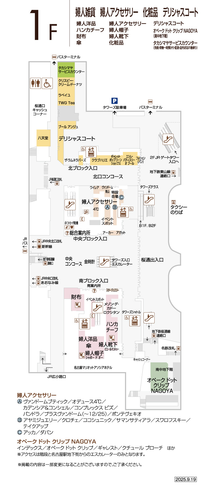 近鉄百貨店 四日市店フロアガイド4階 こども服・おもちゃ・紳士服・紳士洋品・宝飾・時計・めがね・美術・家庭用品。