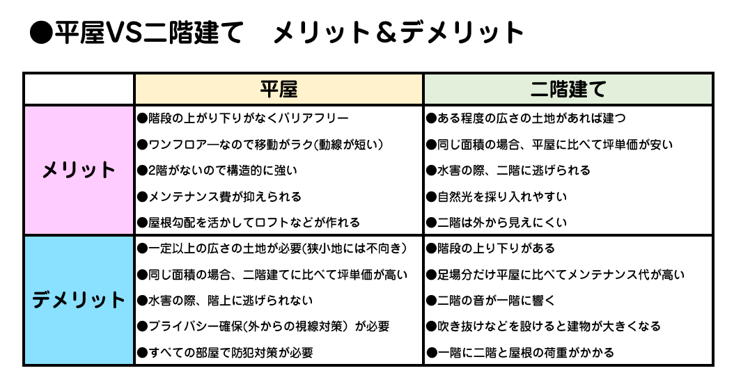 平屋と二階建て比較!メリット&デメリットがすぐわかる。