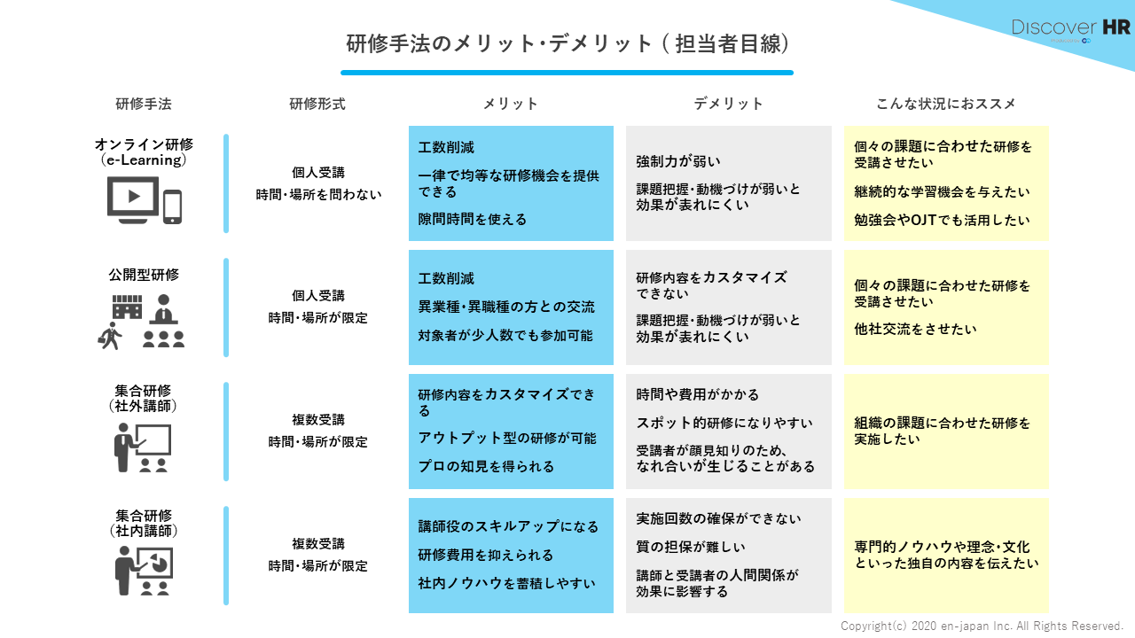 様々な研修手法の検討に メリット・デメリット比較エンカレッジ。
