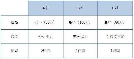 複数の選択肢を比較する際にはメリット・デメリット表を使わない林。