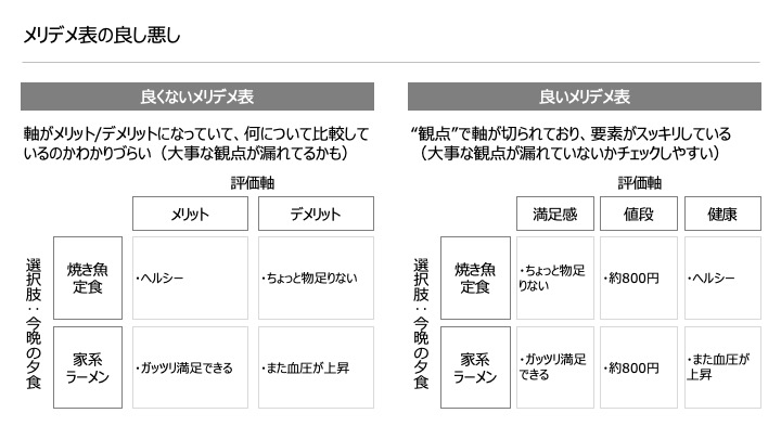 意思決定の際はメリデメ表よりも比較表を使え! その理由や作り方わかりやすく解説。
