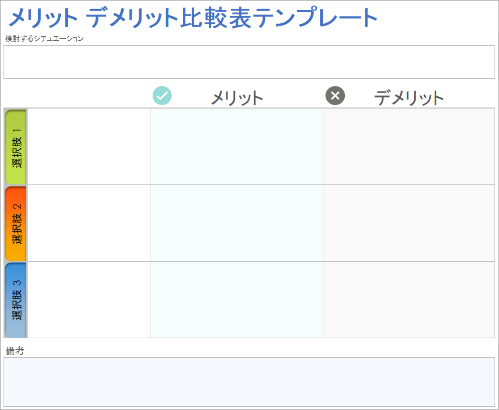 プロコン表を使って意思決定への比較検討をスムーズに!マーキャリメディア。