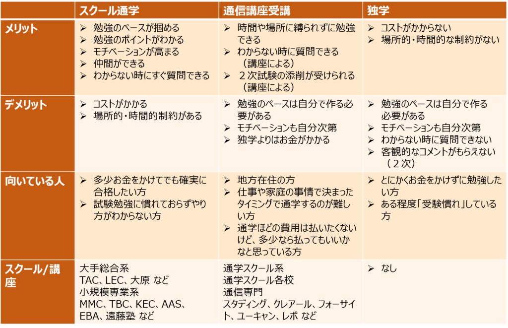 中小企業診断士の勉強を始めようと思ったら見る動画 学習スタイル別のメリット・デメリット比較表 - 一発合格まとめシート Matome-sheet。