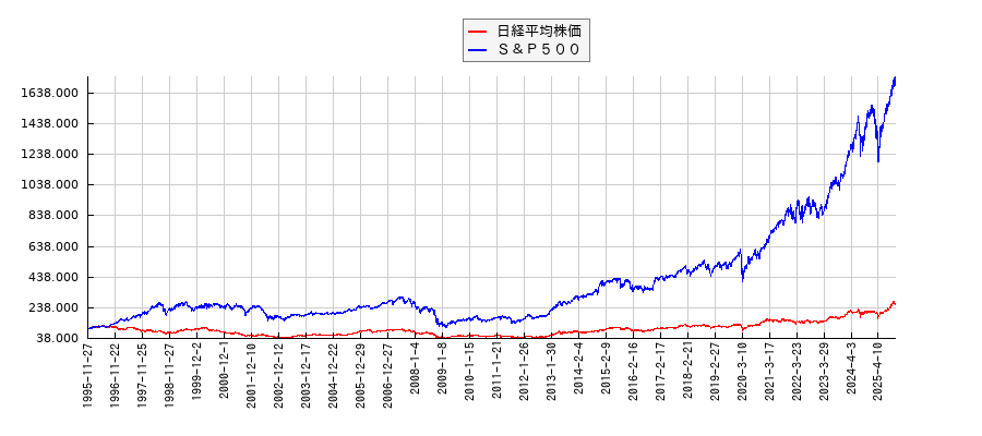 日経平均株価とS&P500のパフォーマンス比較 30年。