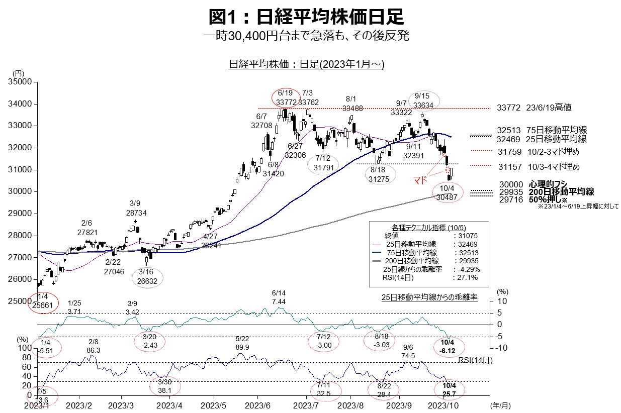 今週のチャート分析 日経平均一時30,400円台、米10年債利回り一時4.8%台にFINTOS! フィントス! 野村證券の投資情報。