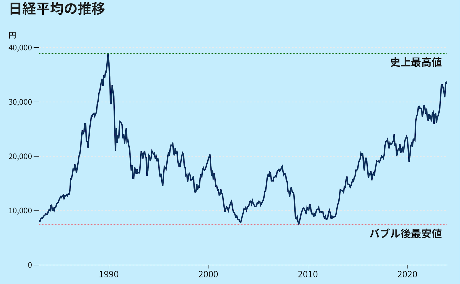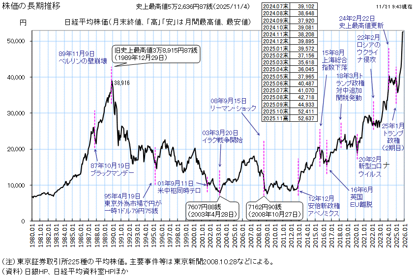 日経平均株価の振り返り 過去70年の歴史をチャート付きで解説わらしべ瓦版 かわらばん。