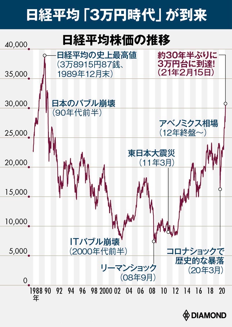 データで見る日経平均 30年半ぶり3万円台 - 日本経済新聞。