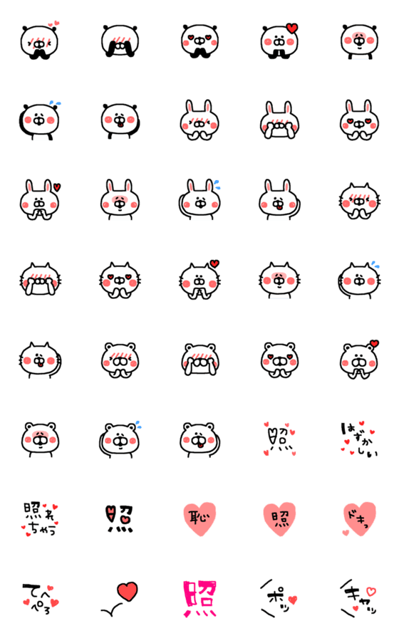 照れてる動物たちの絵文字☆のLINE絵文字画像、情報など。