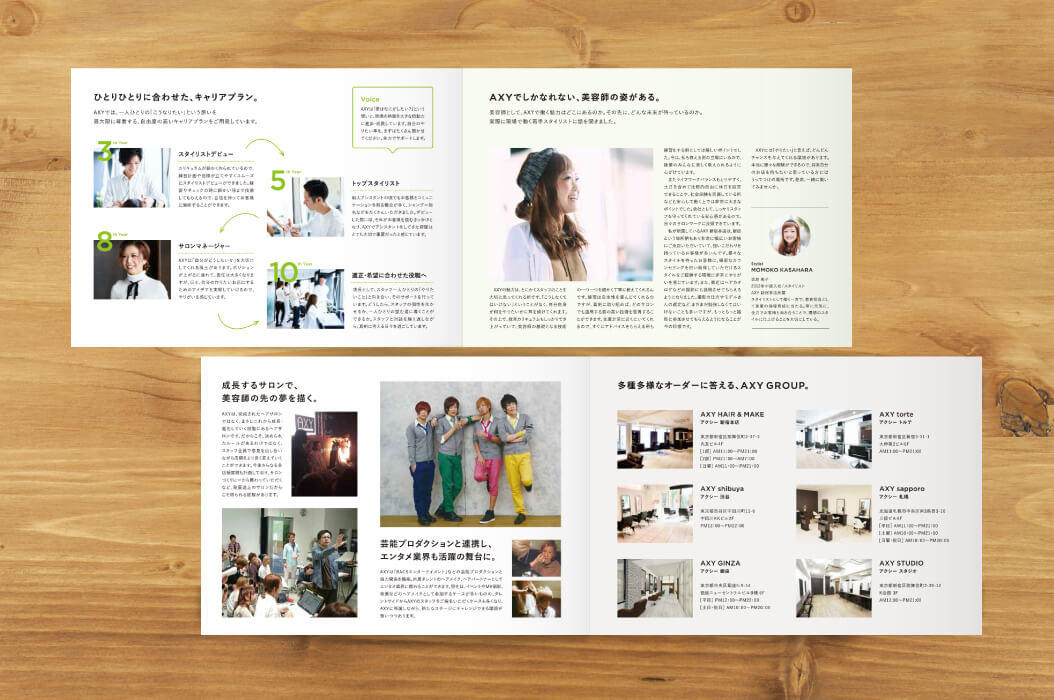 AXY GROUP採用案内パンフレット制作実績Pamphlet Clips。