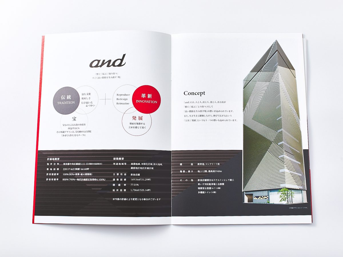 おとな感。銀座商業ビルの不動産パンフレット100人のデザイナ。