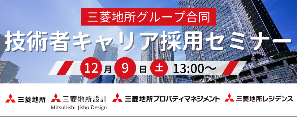 募集を終了致しました※※※100名限定!2023 12 9 土 三菱地所グループ合同 技術者キャリア採用セミナーアーキテクト・エージェンシークリーク・アンド・リバー社建築士・建築設計・転職。