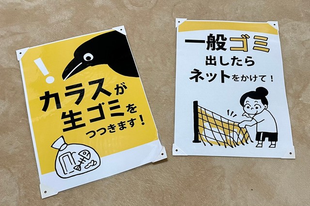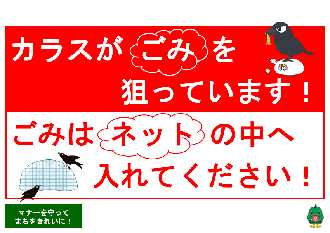 ゴミ置き場カラス対策ネット使用呼びかけ イラスト付 プレート看板 W450×H300 エコユニボードSP-SMD595-45x30U-スタンド看板通販のサインモール。