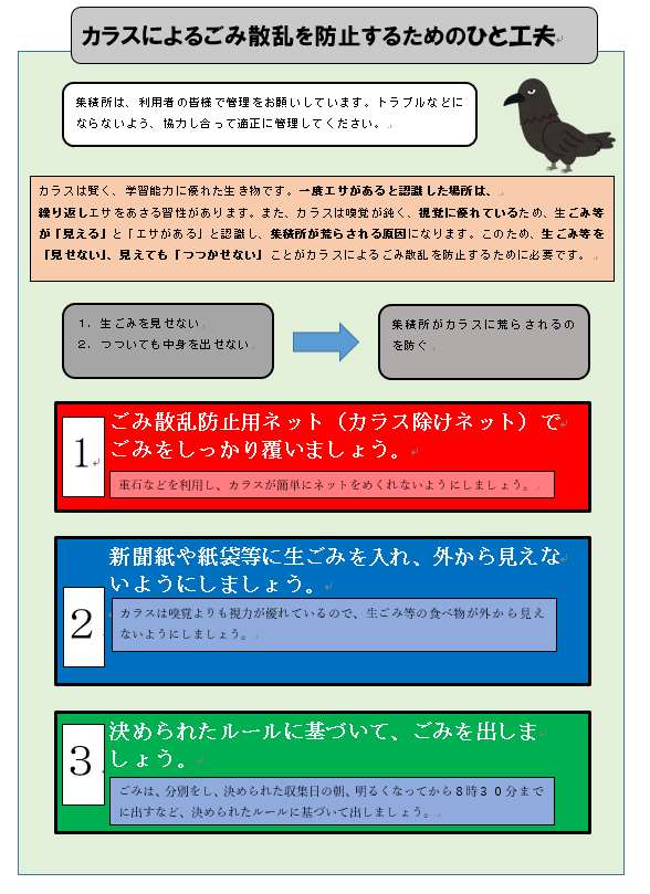 楽天市場 <選べる注意文> ゴミ からす 看板 注意 よけ 対策 収集 分別 マナー プレート 被害 置場 捨て場 お願い ルール パネルW300×H220mm 屋外用 制作 作成 ごみ マンション アパート 管理 イラスト わかりやすい シンプル UVカット 業務用 : イヌのかんばんや。