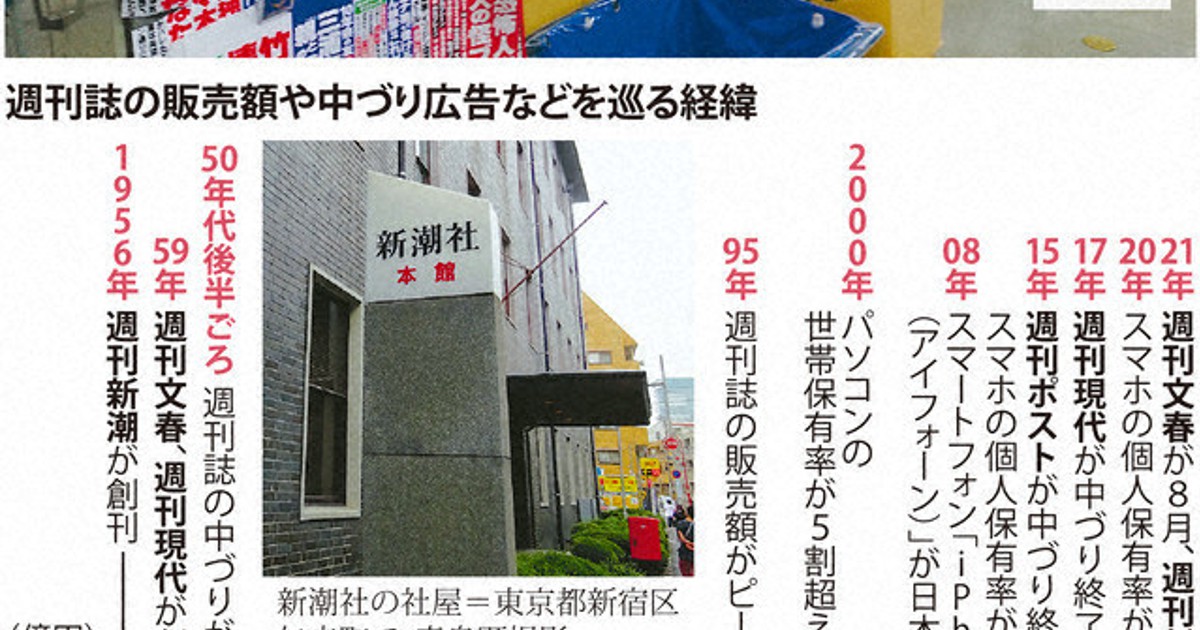 週刊文春、中づり広告を終了へ 「一つの文化だった」:朝日新聞。