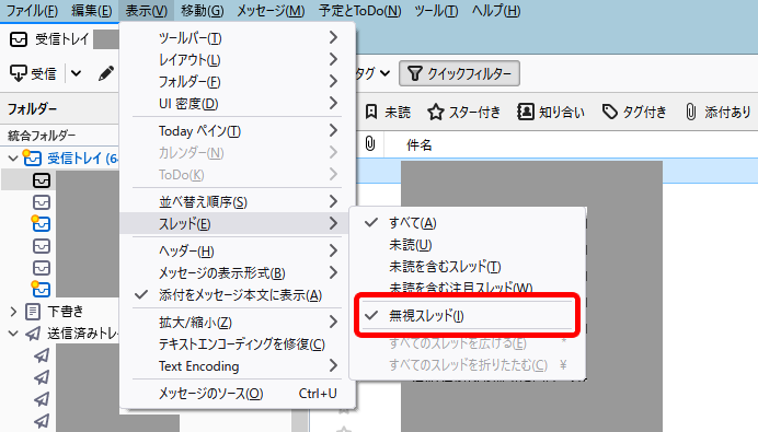Thunderbird サンダーバード の受信トレイからメールが消える事件たぬまん。