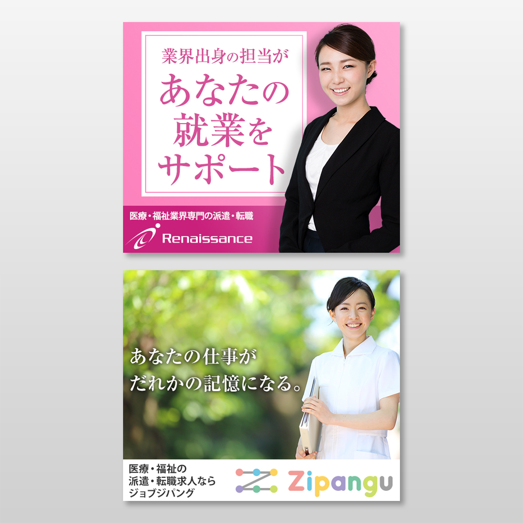 1枚4500円〜 保育士・介護士の現場経験者が働く人の心に届く求人バナーを制作ますバナー制作・バナーデザインの外注・代行ランサーズ。