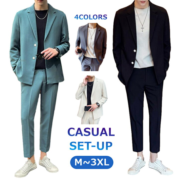 楽天市場 上下2点セット メンズ スーツ カジュアル セットアップ メンズ 夏 ゆたり テーラードジャケット ストレートパンツ 上下セット メンズファッション テレワーク ビジネススーツ オフィスカジュアル おしゃれ 送料無料 : RYOUKOU楽天市場店。