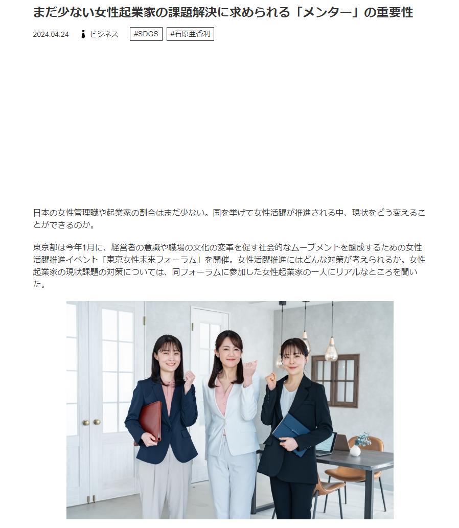 日本でまだ少ない女性起業家、後進に道筋を示す - BBCニュース。