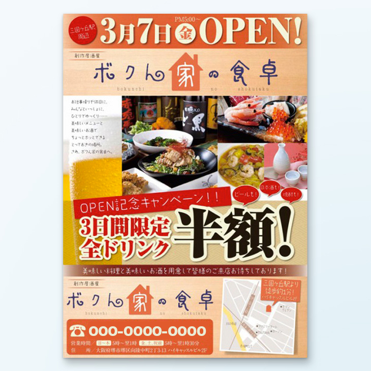 居酒屋_開業・オープンチラシ・フライヤーの無料デザインテンプレート - ネット印刷グラフィック。