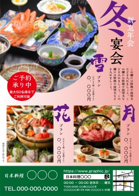 居酒屋のチラシ無料テンプレート・デザインサンプル - ネット印刷グラフィック。